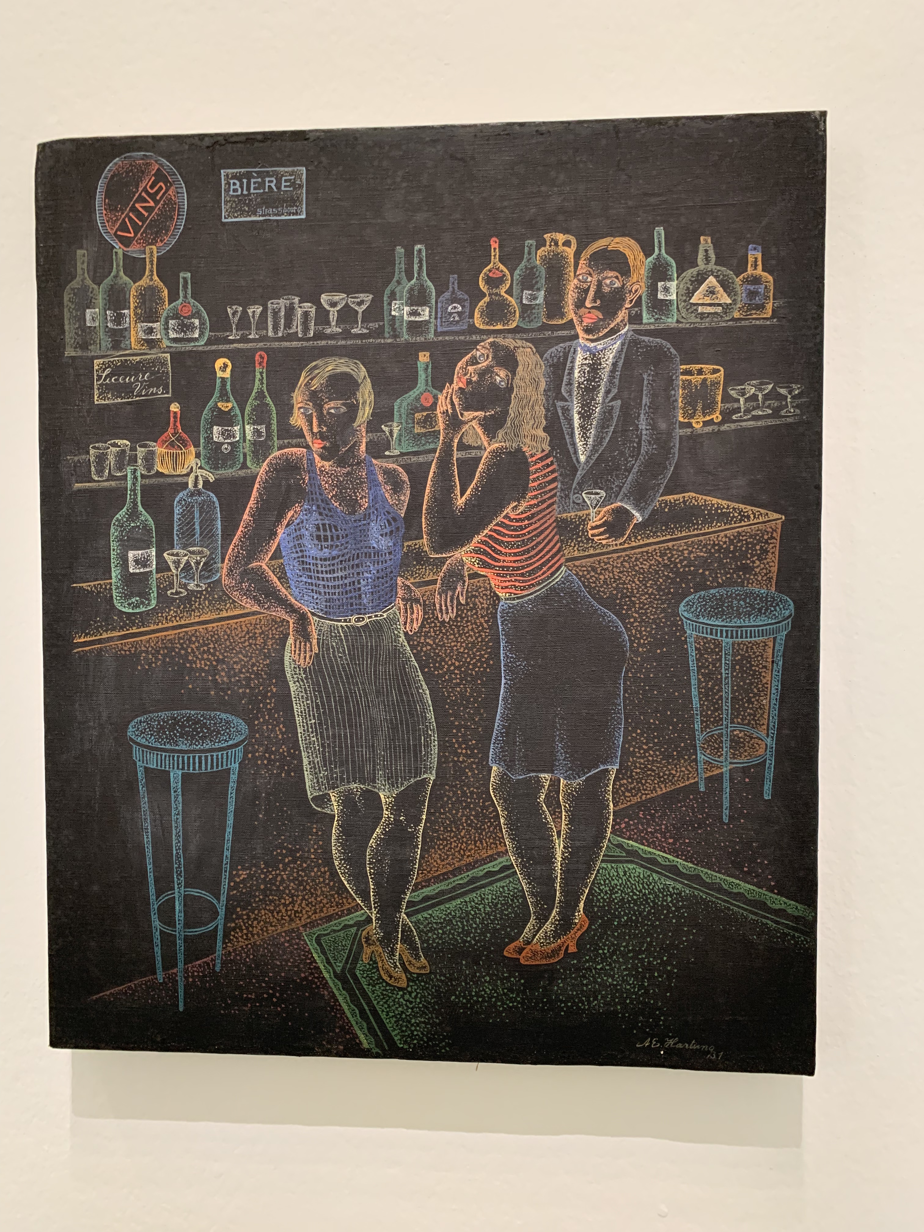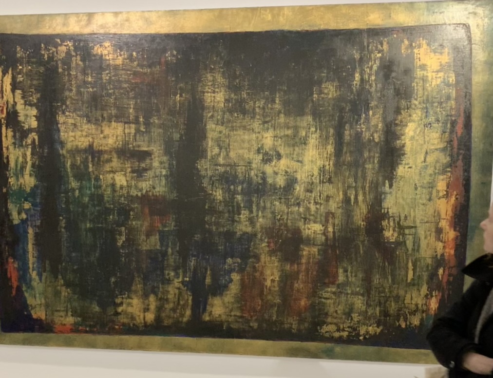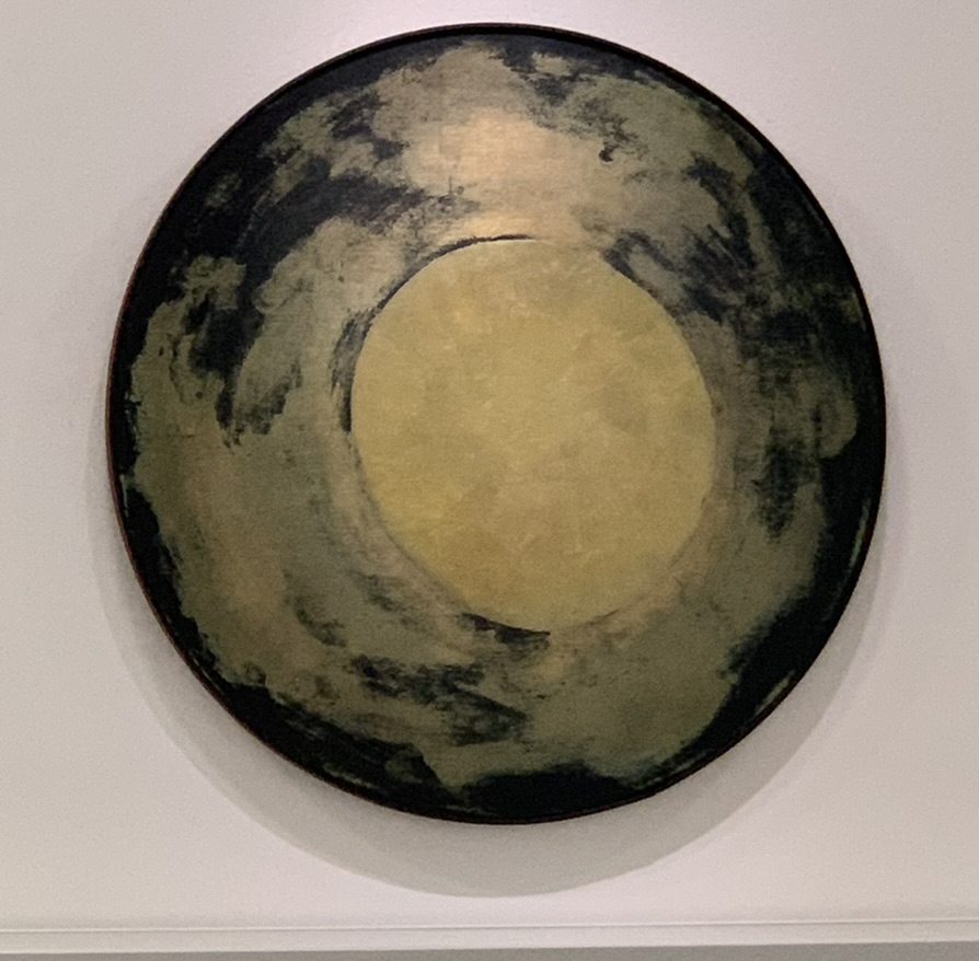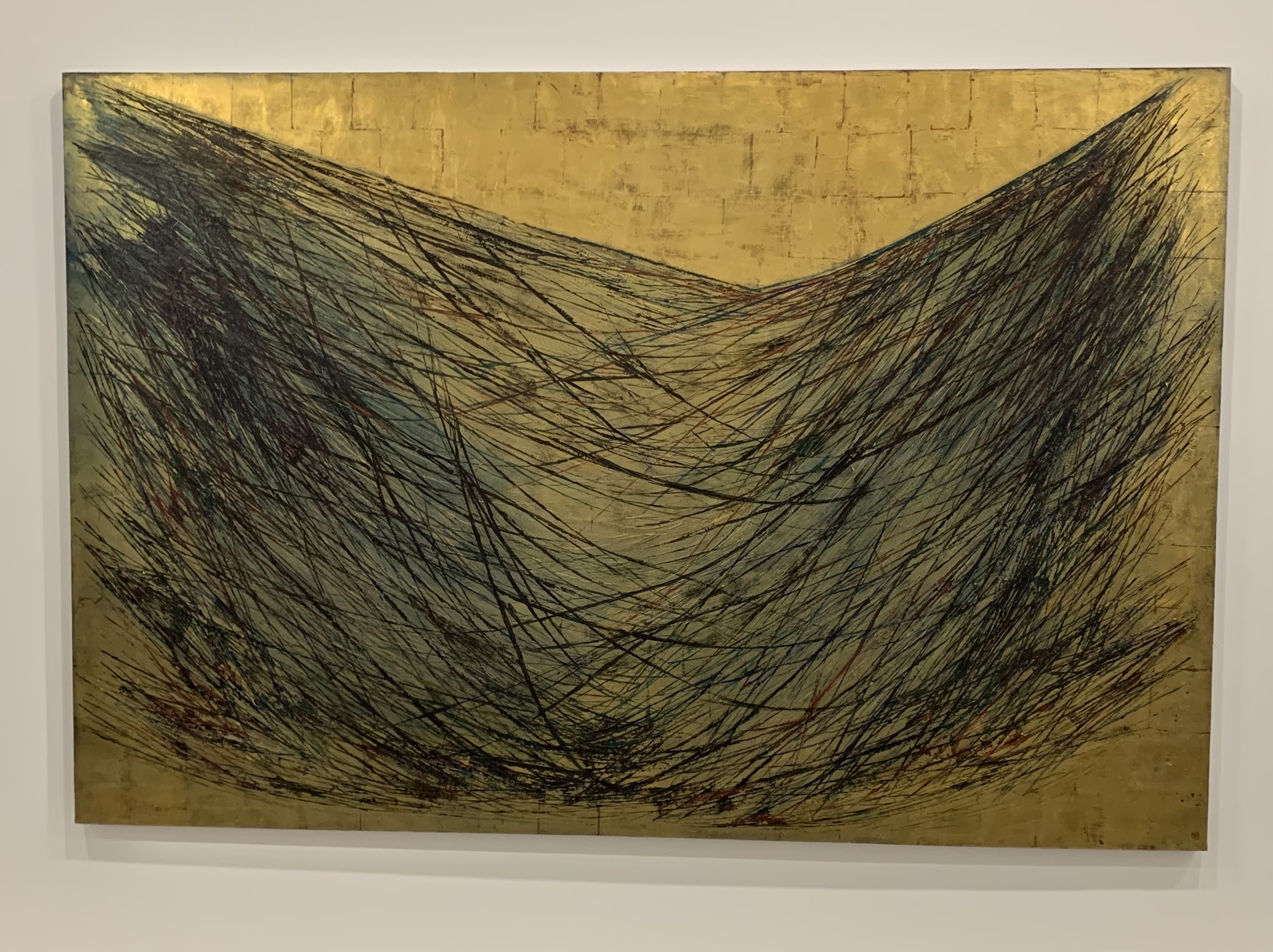 We understand this isn’t for everyone, but we found Bergman’s work both engaging and stunning. We had never heard of her before, and so, if our friend had not made the recommendation we probably wouldn’t have gone. You can look her up for more details about her life and work if you are interested — but for now I’ll simply say she started out in Norway, ended up in Germany (as she married a German) and moved to France during WW II. (She wrote scathing articles with illustrations against the Nazis. Not sure how she didn’t end up in prison.) As an artist she started as a realiste, but quickly moved to expressionism and then to her own style using metal leaf foils of all kinds, including gold and silver. She created a process which used Armenian bole (which is a colored clay preparation) in the first steps of working with the foil leaves. The These works are dramatic in person — you’ll have to use your imagination in order to see what we saw. (the first three photos are not the works in foil)