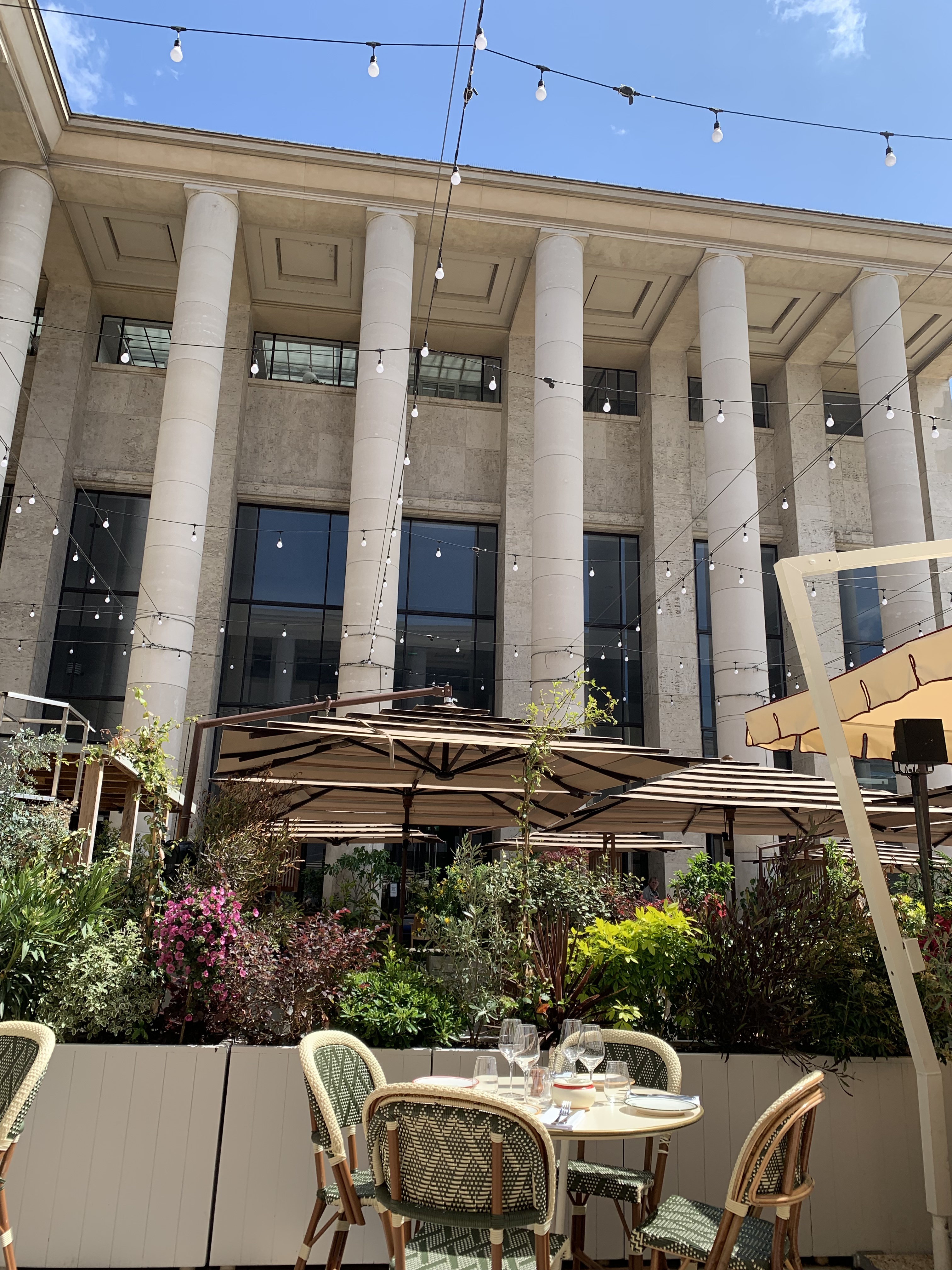 After the exhibit we looked forward to lunch at the cafeteria-style restaurant in the museum. But, to our dismay it is now a fancy restaurant with service inside and outside. We took a table outside but were not comfortable so we left. We went next door – literally – to a new place as well – called Bambini. The two restaurants are side by side. The day was hot and as peak lunch hour was approaching both restaurants started to fill up.
