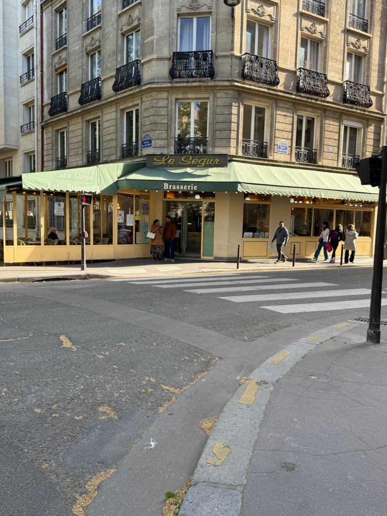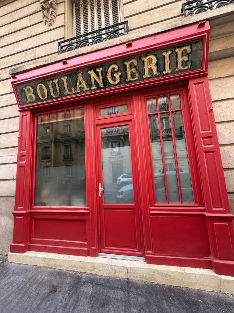 Almost home- this is the ground floor of our apartment building. The Boulangerie (bakery) is long gone – now an apartment. But the store front has become a bit famous- the backdrop for a Chanel ad.