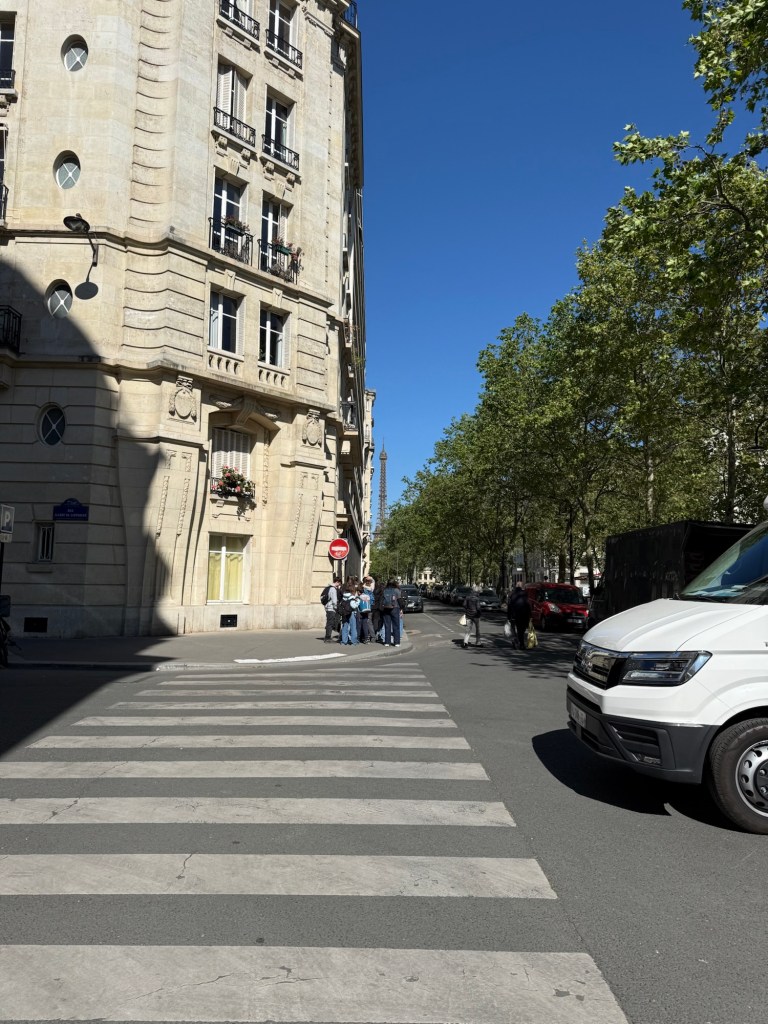 On my way to the market—the Eiffel Tower clear in the distance.